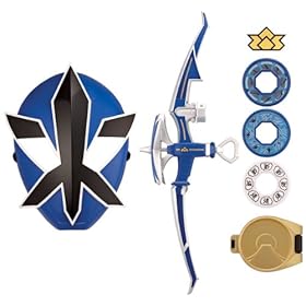 Become a Power Rangers Samurai hero with the Bandai Power Rangers Warrior Training Set. This roleplay set includes a Power Ranger Blue Ranger mask, a Samurai Spin Sword, three sword discs, a disc holder and a belt clip to holster the sword. Its all the gear needed to morph into the Water Ranger! The Samurai Spin Sword spins the discs, and the reflective surface of the sword displays an animation sequence of a Zord coming to life.